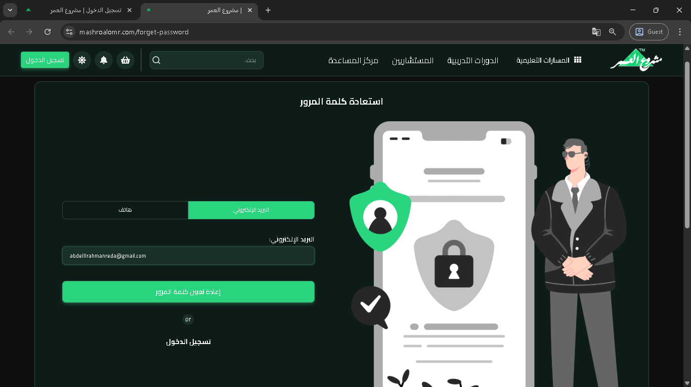 شرح خطوات استعادة كلمة المرور في حال نسيانها من خلال إدخال البريد الإلكتروني واستلام رابط إعادة التعيين للوصول إلى كلمة مرور جديدة.