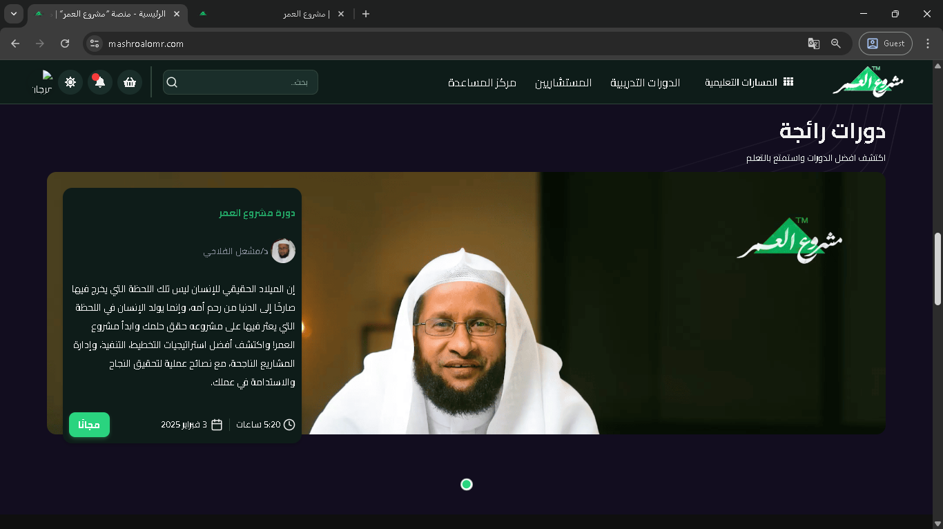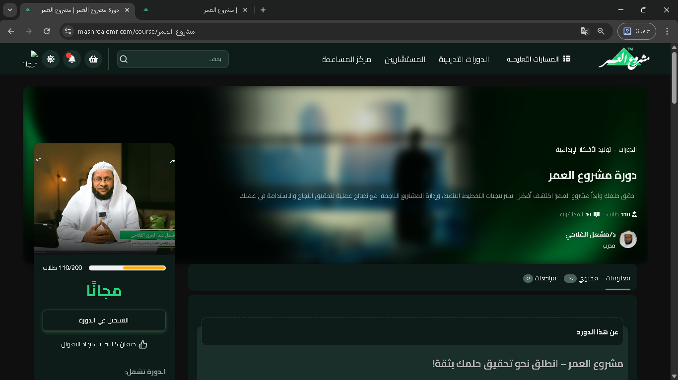 توفر منصة مشروع العمر العديد من البرامج التدريبية والكورسات التي يمكن الاشتراك بها بسهولة. في هذا المقال، سنشرح لك خطوة بخطوة كيفية الاشتراك في الكورس والوصول لمحتوى الدروس داخل صفحة التعلم.