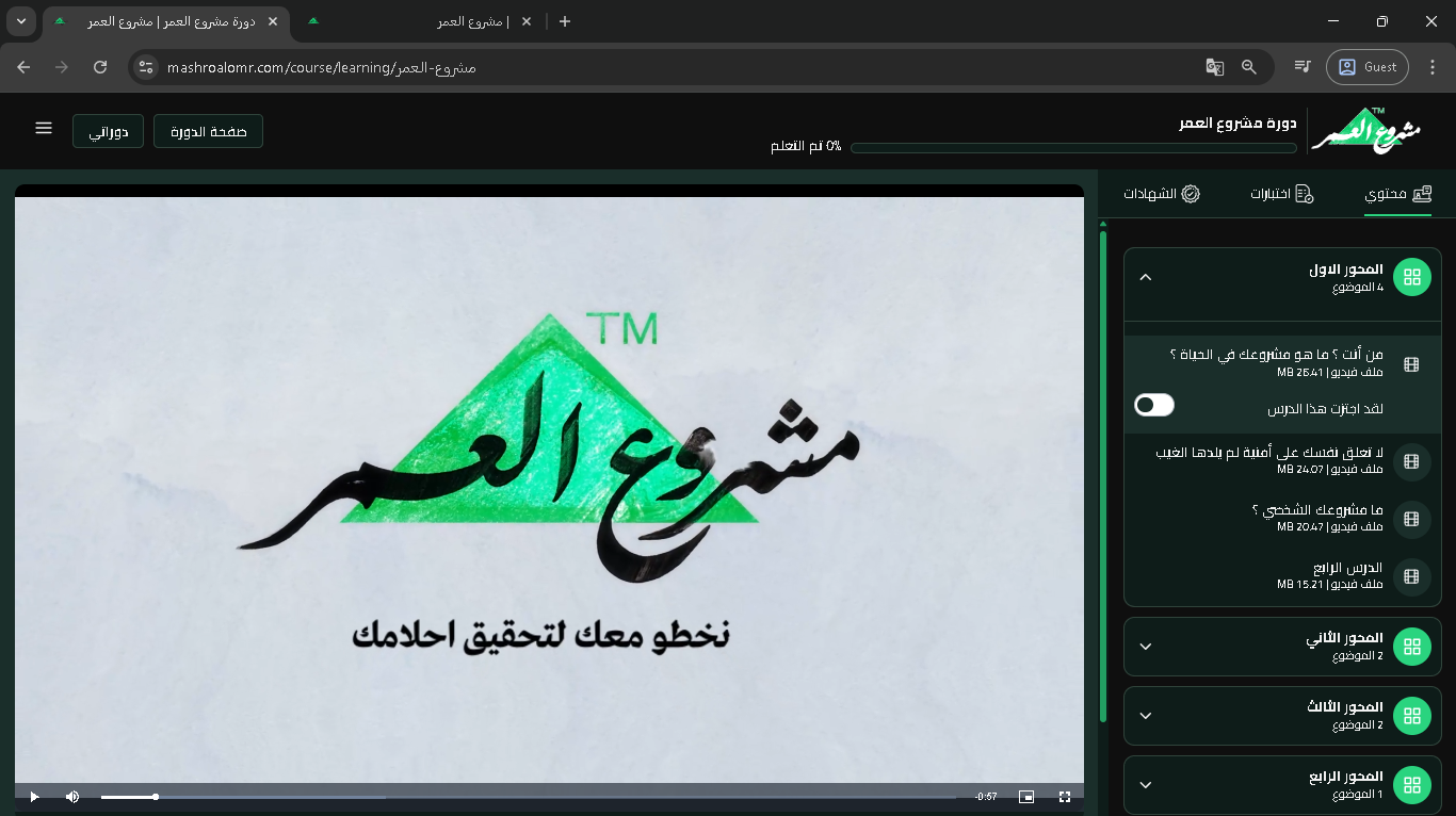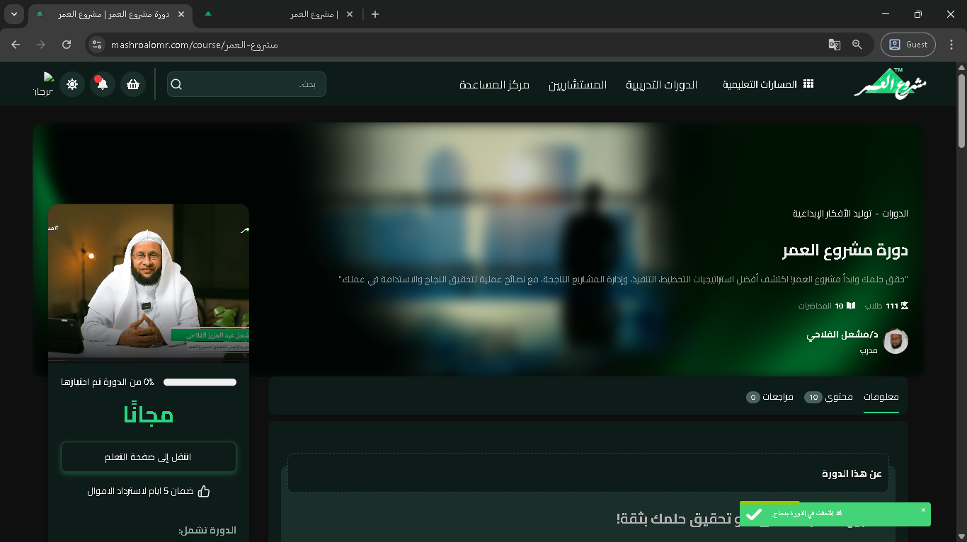 بهذه الخطوات البسيطة يمكنك الاشتراك في أي كورس متاح داخل منصة مشروع العمر والبدء في مشاهدة الدروس فورًا.
