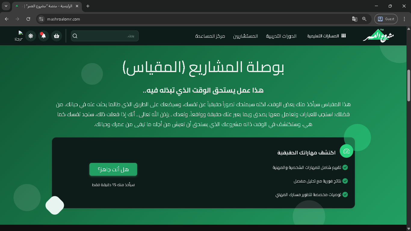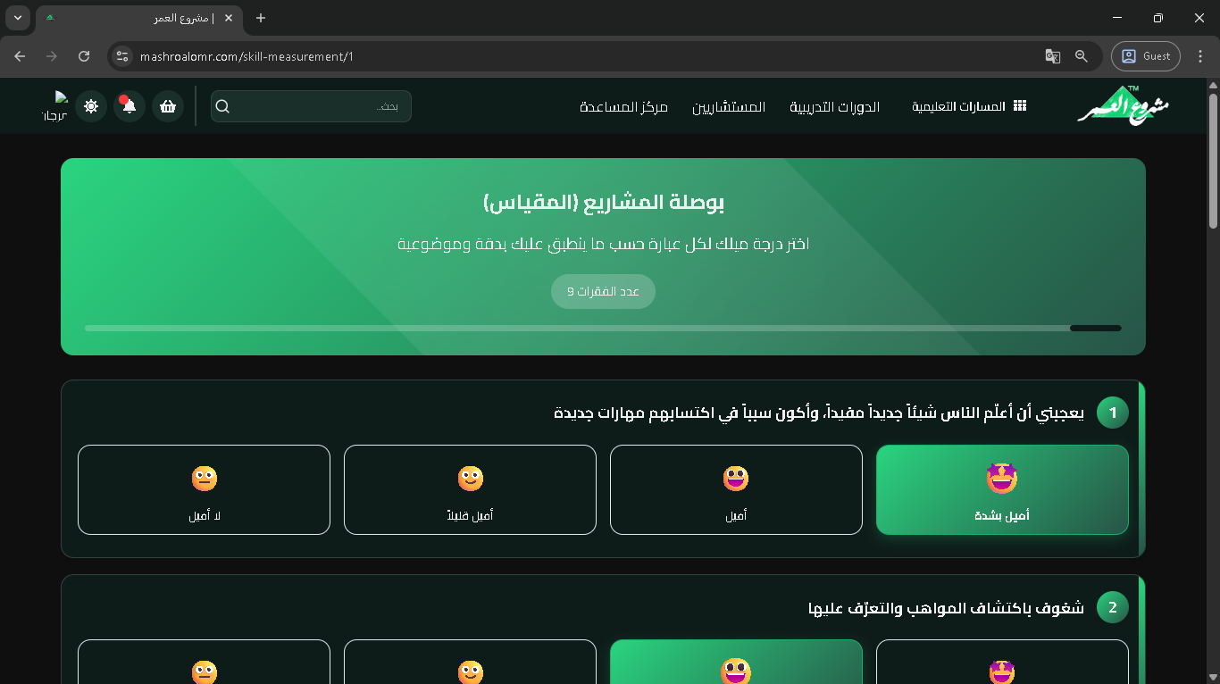 بهذه الخطوات البسيطة يمكنك إجراء اختبار المقياس على منصة مشروع العمر بسهولة والحصول على تقييم دقيق لمستواك.